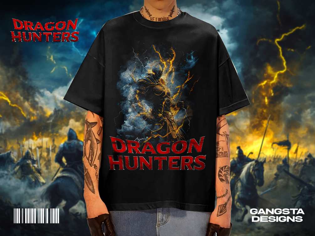 Graphic T-Shirt Design Dragon Hunter (PSD & PNG) ๐Ÿ’€๐Ÿ‘•